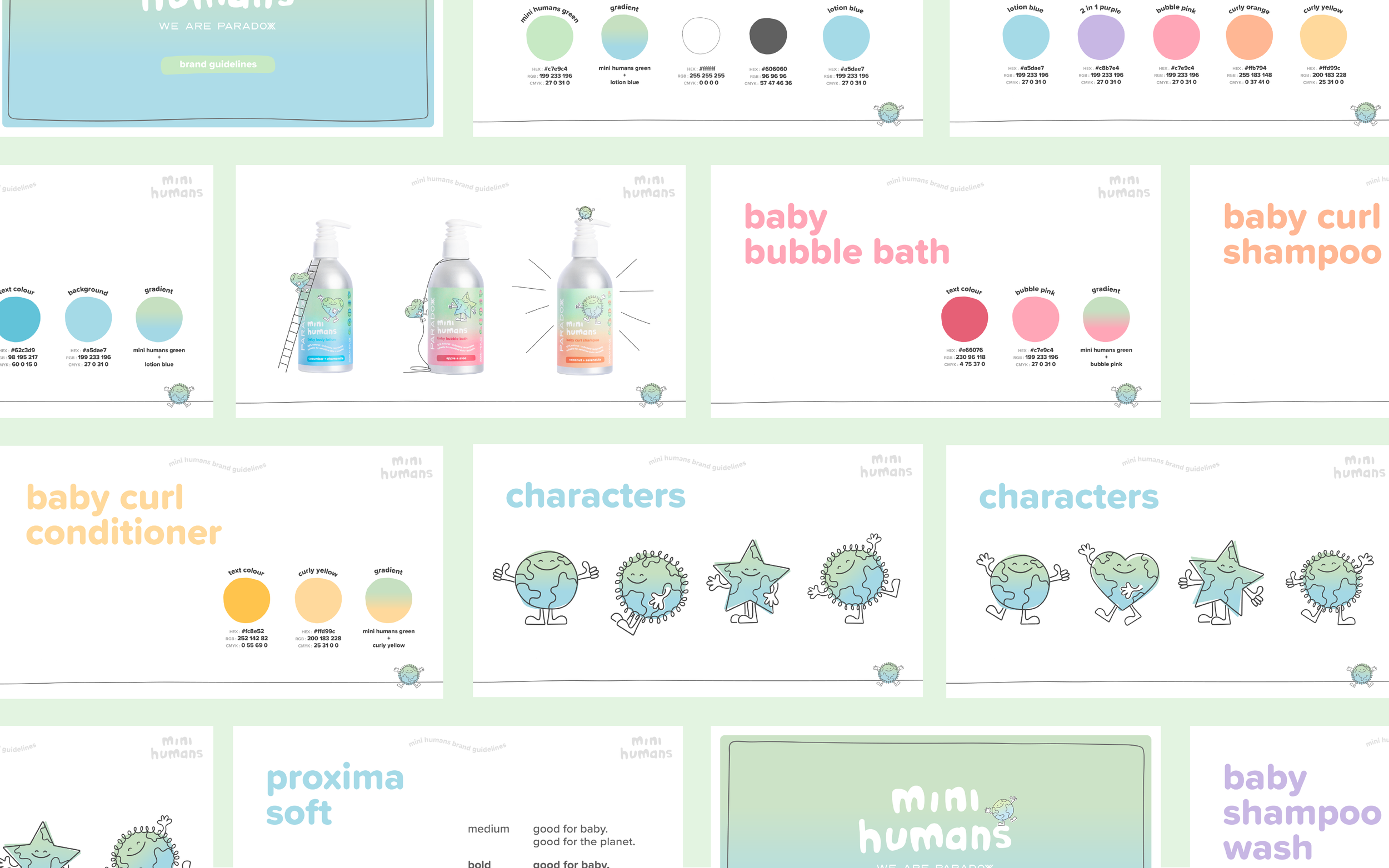 Mini Humans branding embraces a hand-drawn aesthetic and a vibrant colour palette, infusing each design with quirky character and charm. By combining playful illustrations with a conscientious approach to sustainability, the project aims to engage even the youngest of kids with the importance of environmental responsibility in a fun and engaging way.