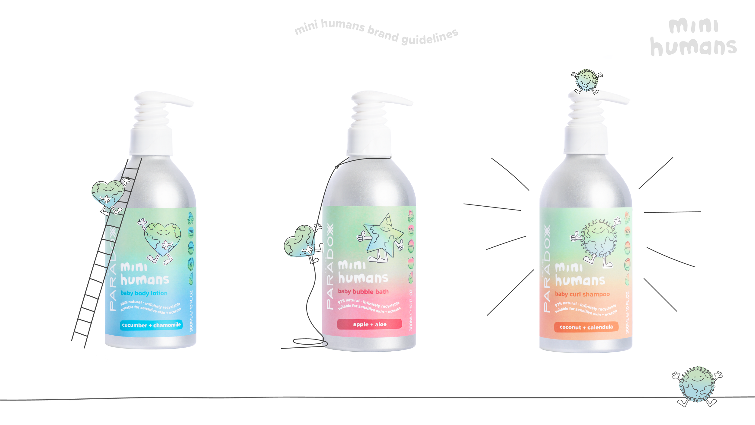 The newest edition to the We Are Paradoxx family, Mini Humans is a natural, clean and skin loving baby and kids beauty brand. Launched exclusively at Target in 2023, this exciting project brings a fun and cool branding approach with a strong sustainable message.
