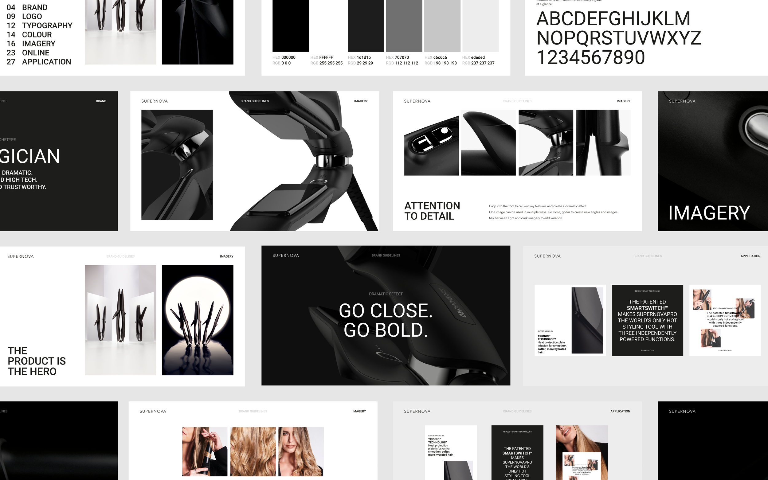 SUPERNOVA™, engineers of high-tech, high-performance hair tools, launched the SUPERNOVAPRO in 2023. The world’s first 3 in 1 hair tool. In preparation of the release, SUPERNOVA™ sought a full-scale brand refresh and design direction. Our team embarked on a mission to craft a dynamic brand identity that echoes the revolutionary spirit of the SUPERNOVAPRO.